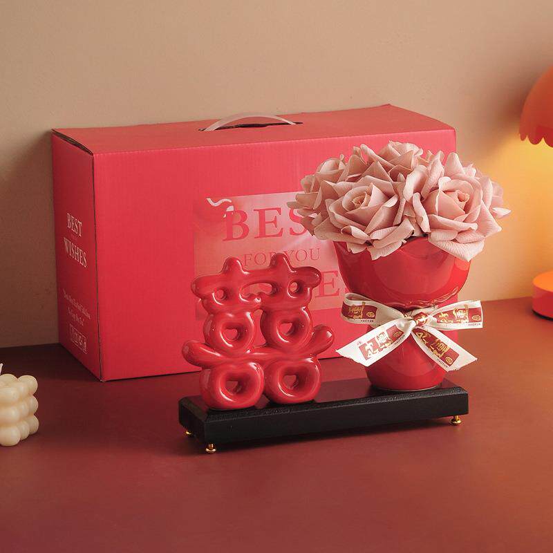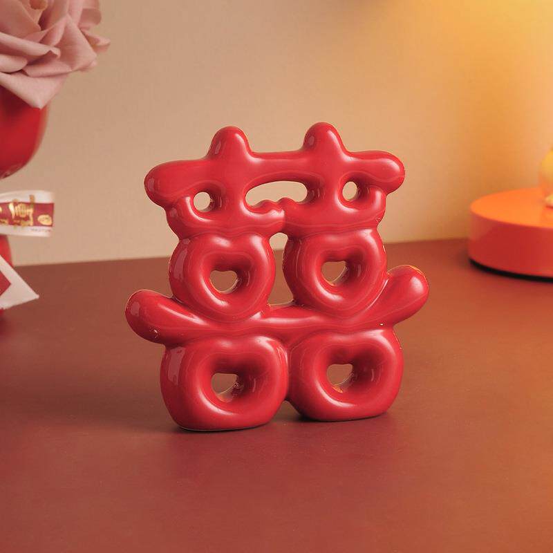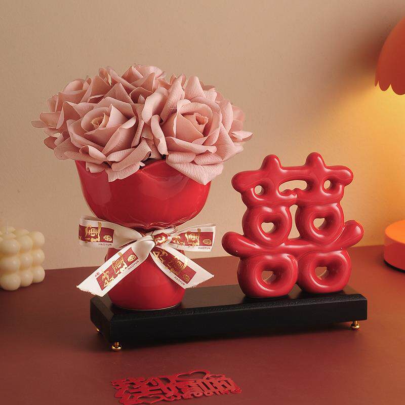 双喜花瓶摆件订婚桌面摆台新婚婚礼结婚婚房布置乔迁搬家礼物道具