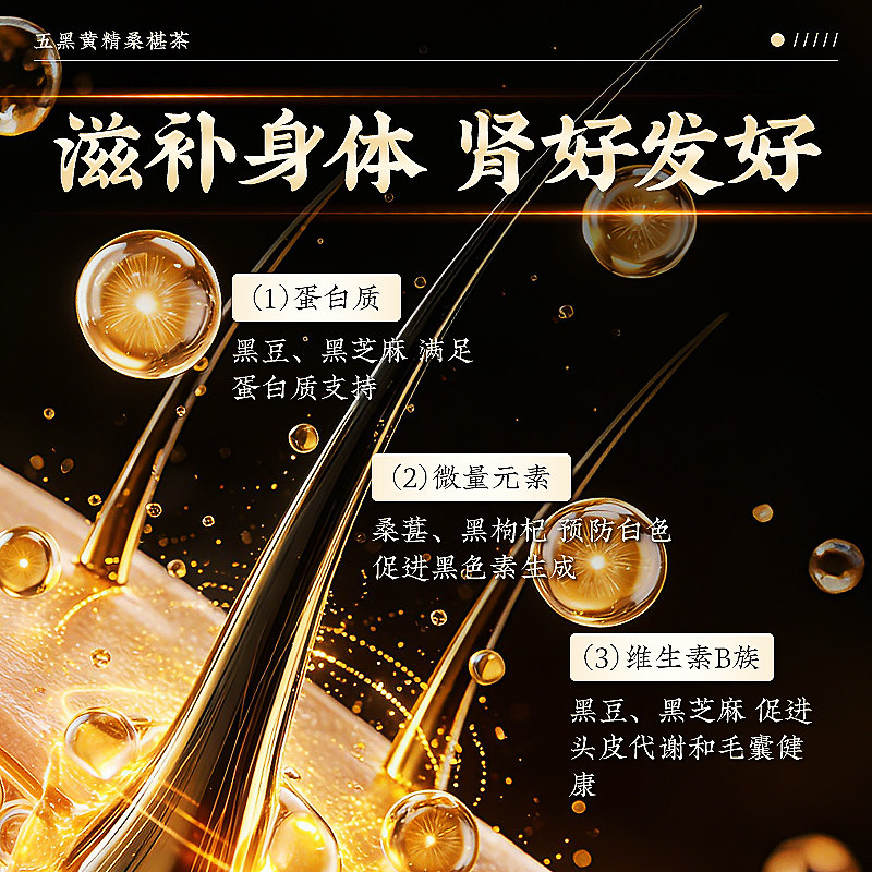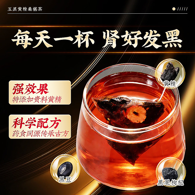 南京同仁堂黄精五黑茶养发生发桑葚肝肾共补泡水养生茶官方旗舰店