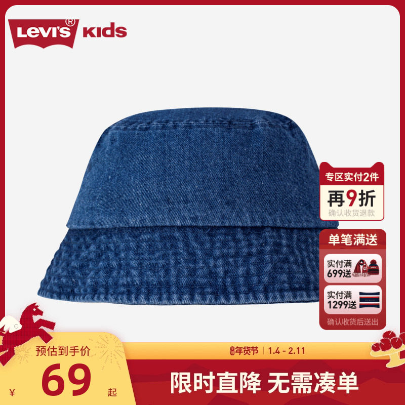 Levi's李维斯新款男女童大童牛仔双马标刺绣logo渔夫帽儿童帽子潮