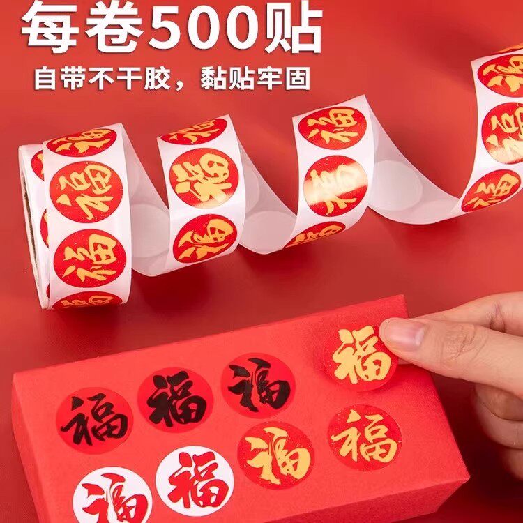 圣诞节贴纸新春新年复古港风福字标签贴卡通迷你小号圆形封口贴画
