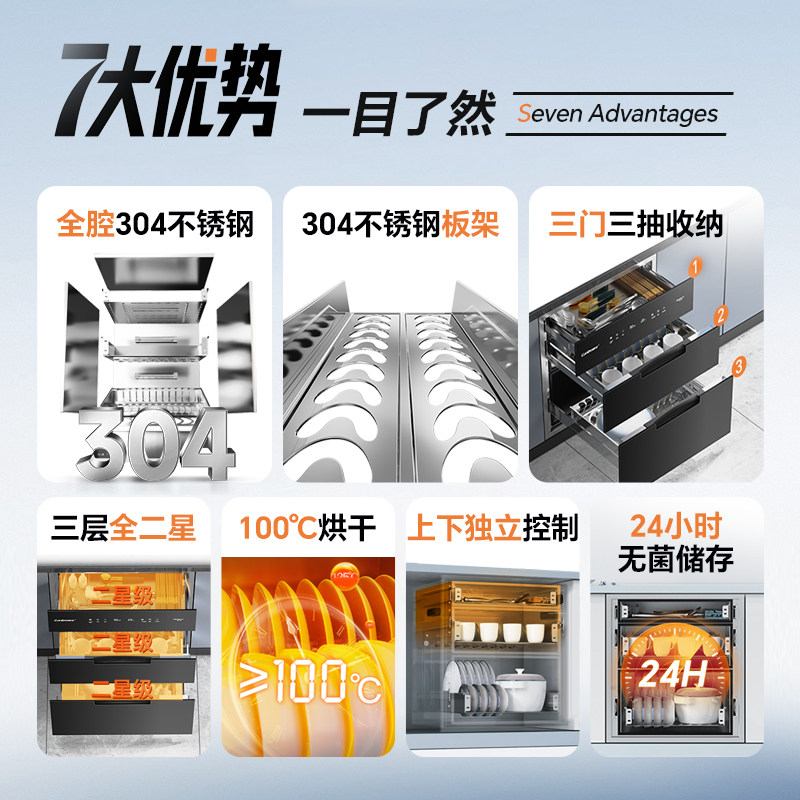 康宝嵌入式消毒柜全二星家用三门碗筷柜全腔304不锈钢25年新款AE