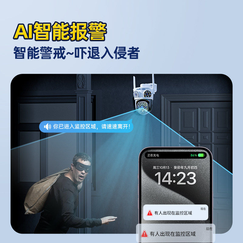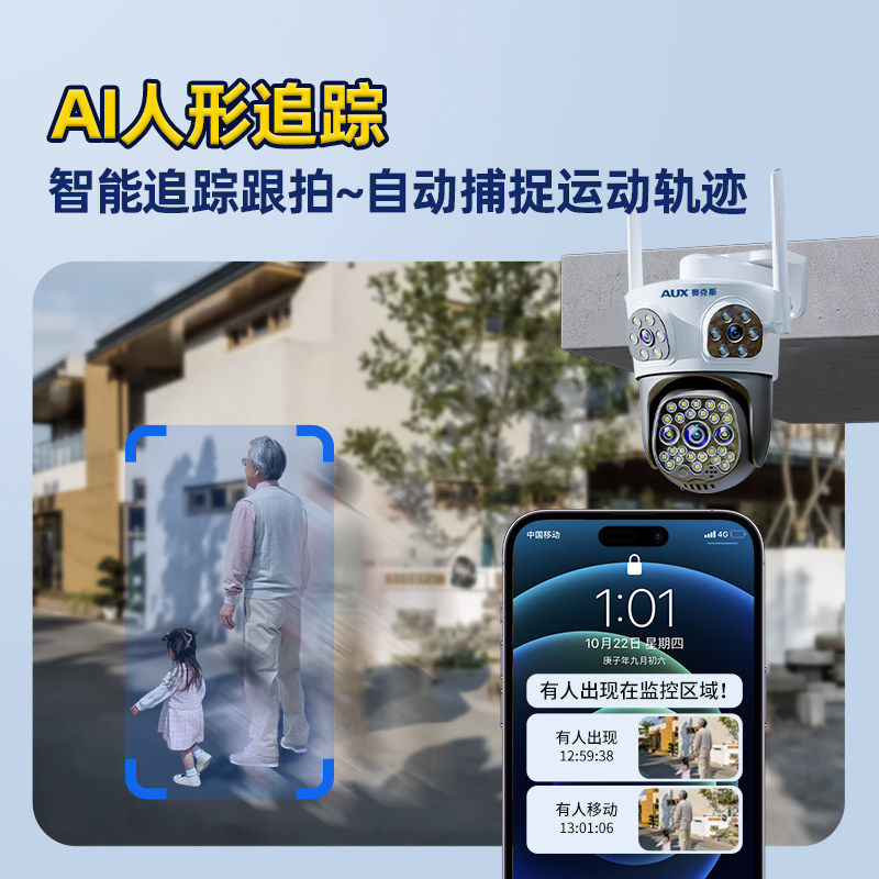 奥克斯摄像头监控器360度无死角室外无需wifi网络手机远程家用4G