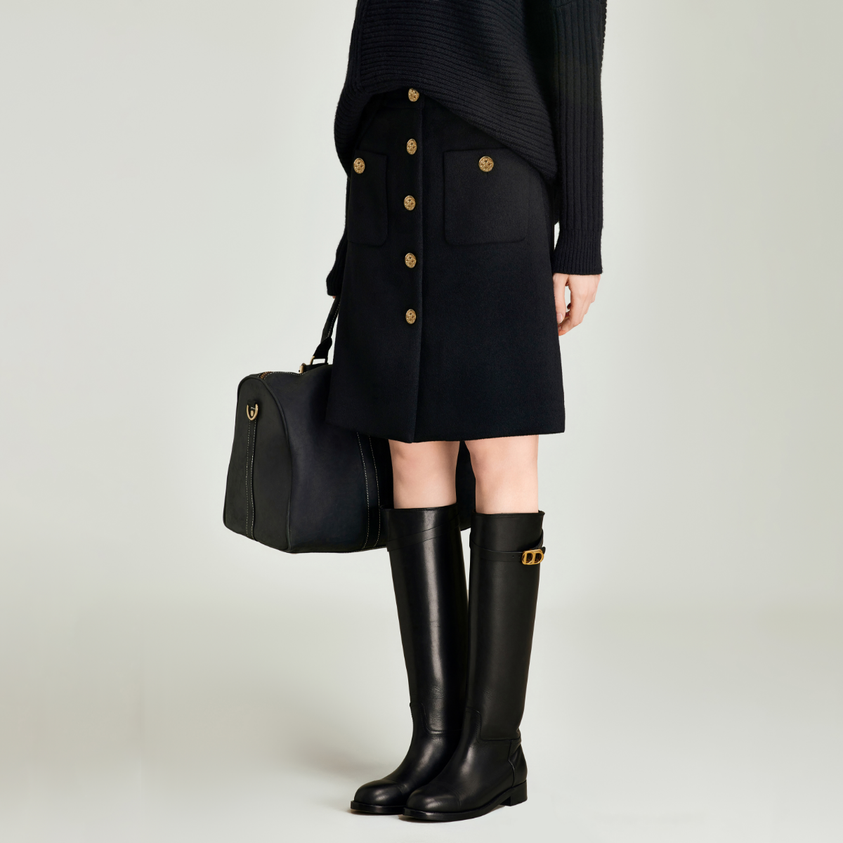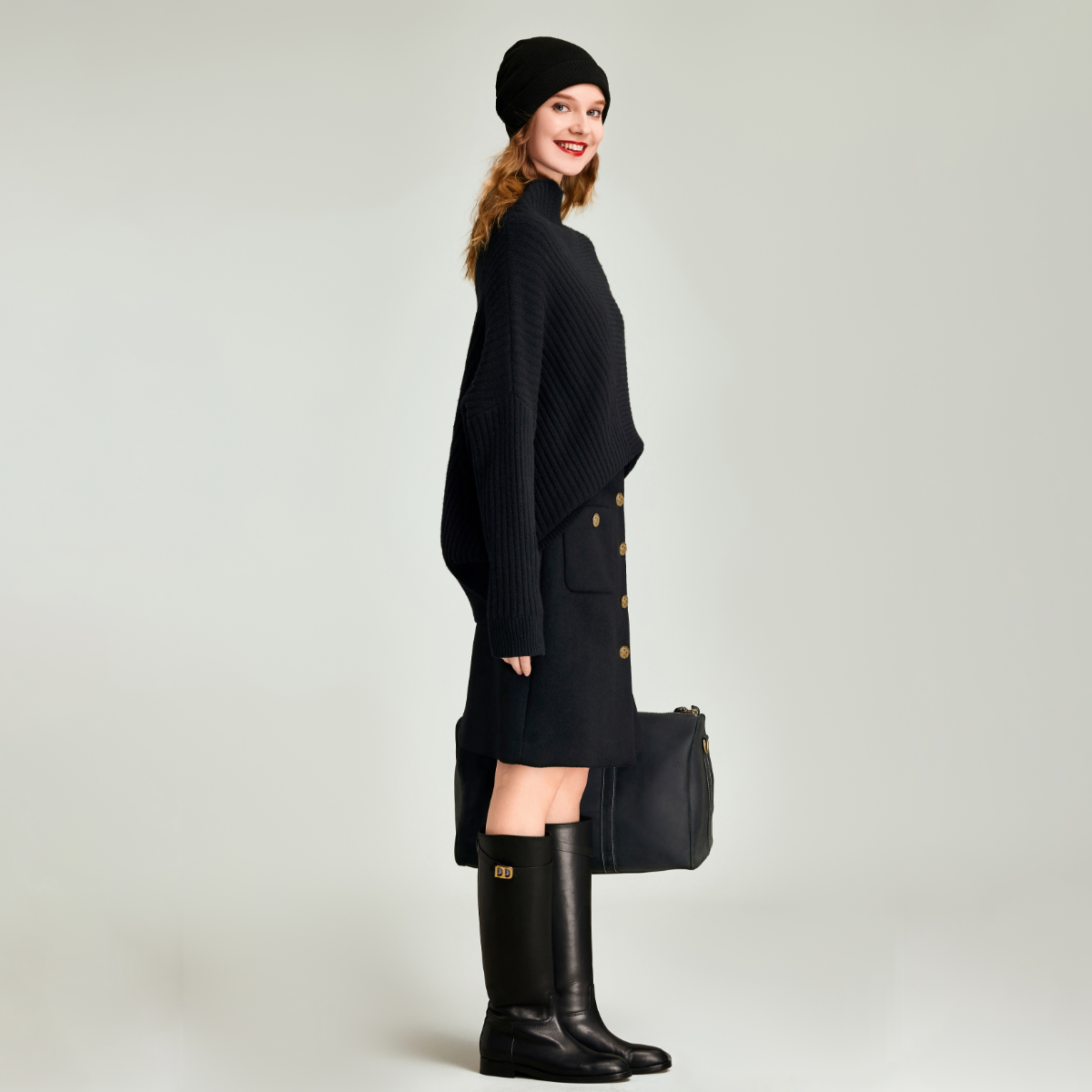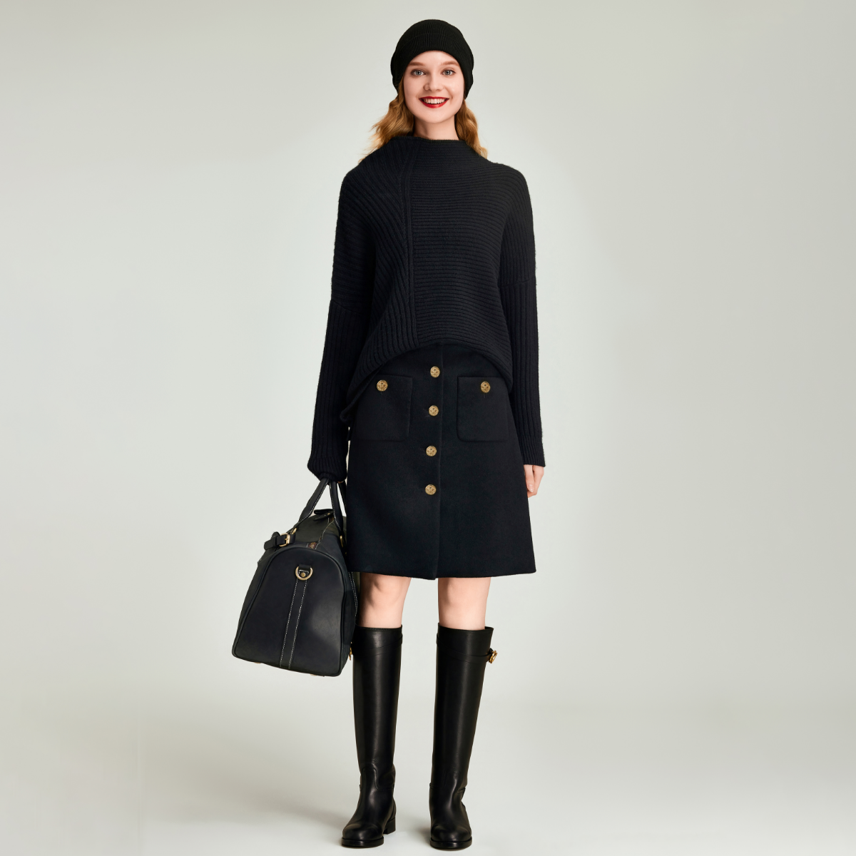 HAVVA高级感毛呢半身裙舒适好穿高腰a字遮胯女裙子2025秋冬S96881
