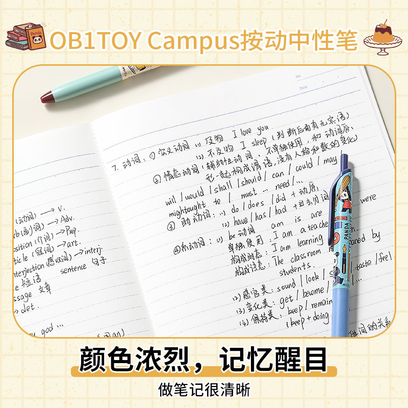 日本KOKUYO国誉OB1TOY 按动中性笔黑色0.5刷题速干薄巧色系水笔高颜值薄荷绿外壳学生用可换替芯熊猫商店