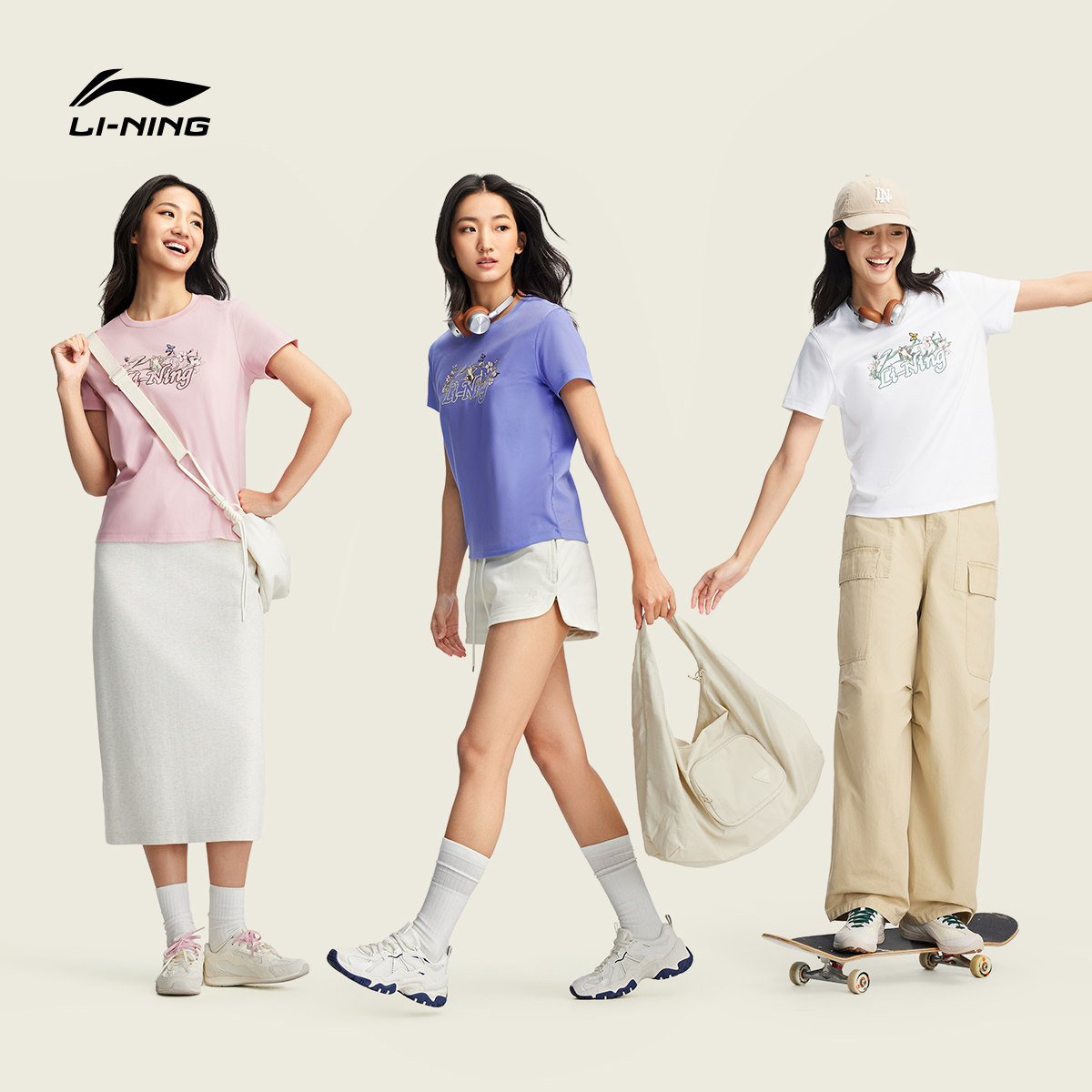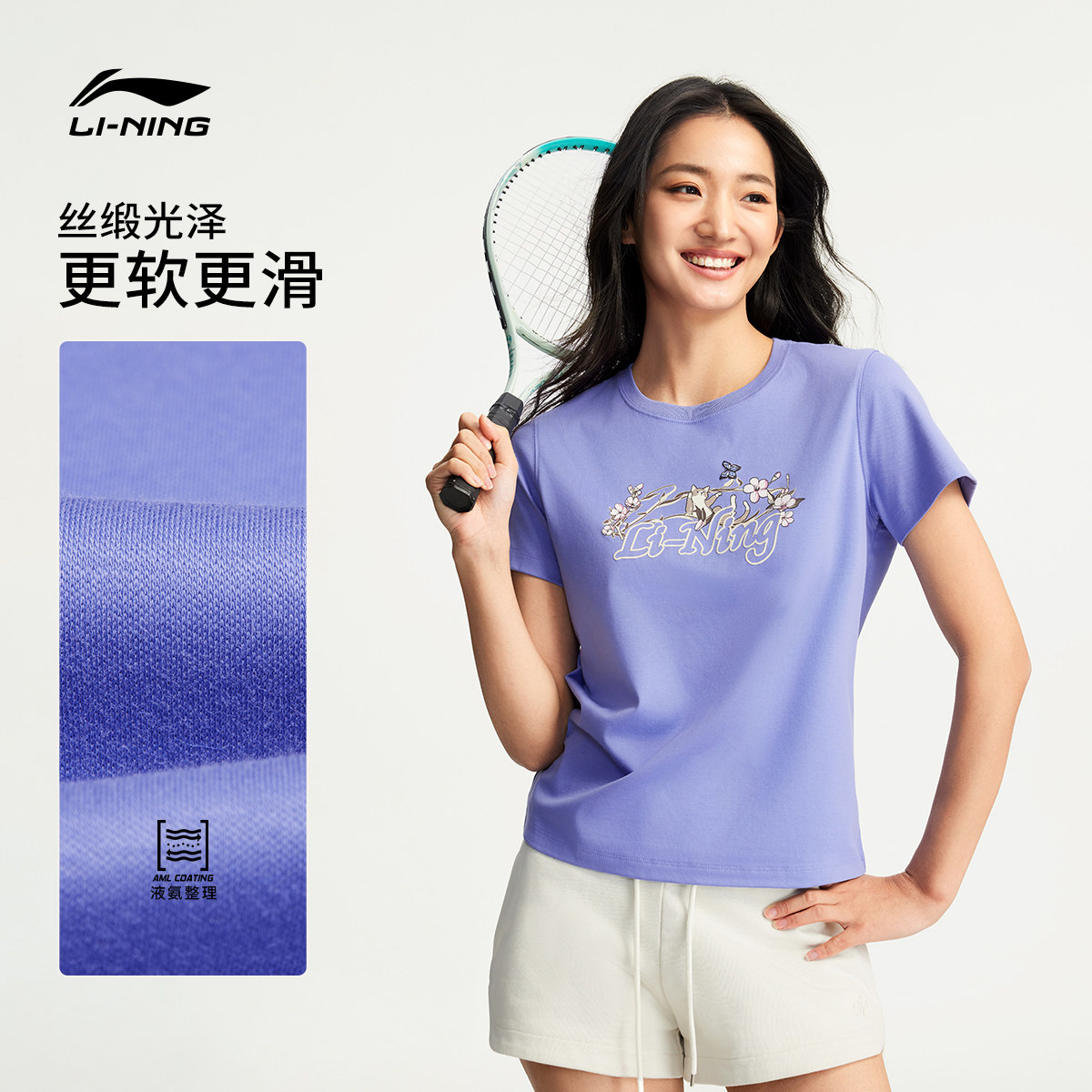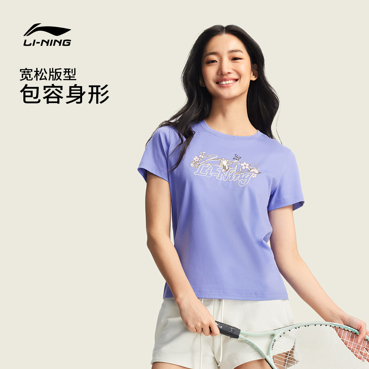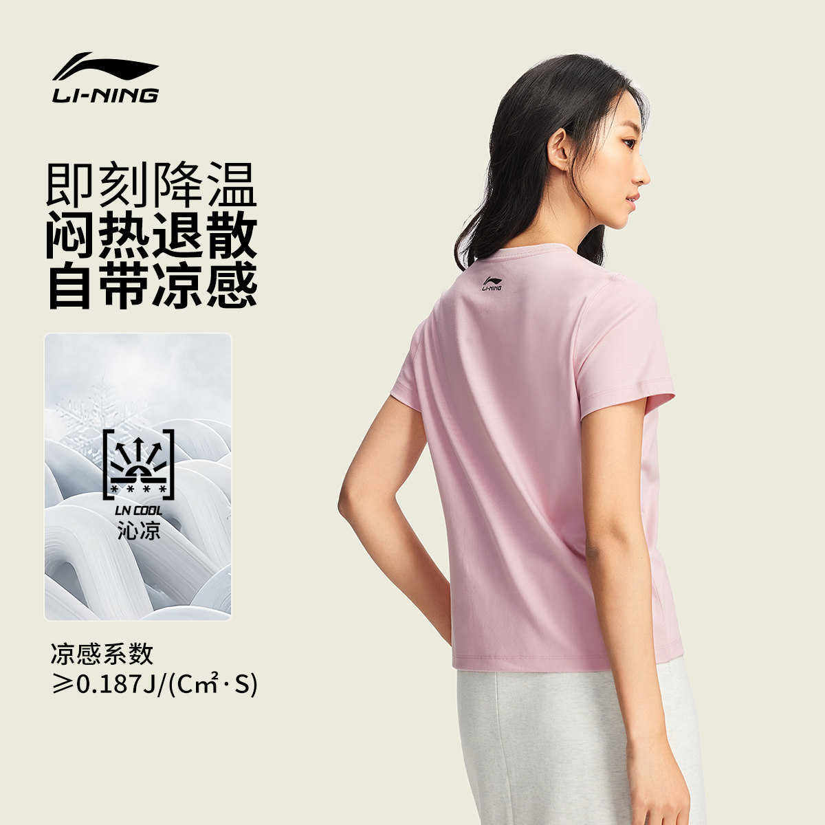 李宁甜美风短袖女春夏2026新款女装冰丝圆领上衣休闲宽松运动T恤