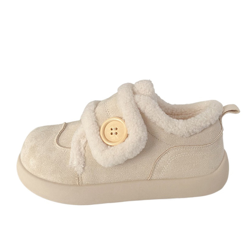 加绒魔术贴板鞋女丑萌冬季新款棉鞋chic小众雪地靴运动小白鞋圆头