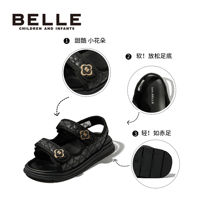 百丽童鞋女童凉鞋夏季新款儿童沙滩鞋女孩公主鞋小香风凉鞋中大童