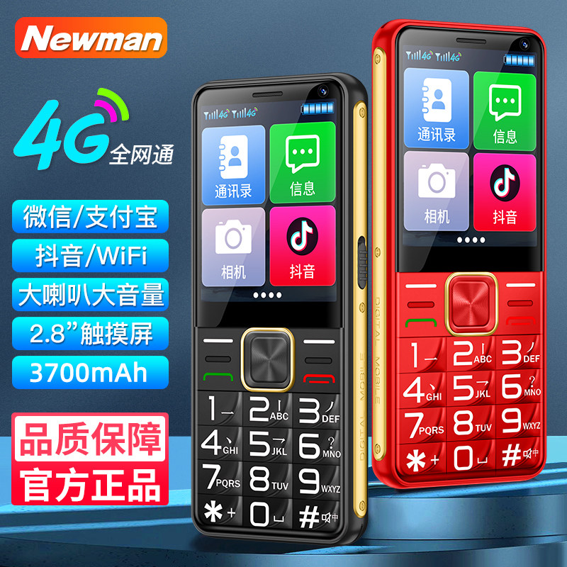 正品纽曼K160老人手机4G全网通老年机学生专用移动手机超长待机可微信触屏手写视频聊天大字大声智能手机