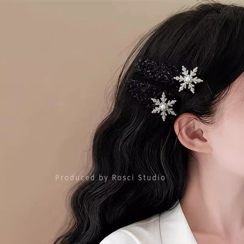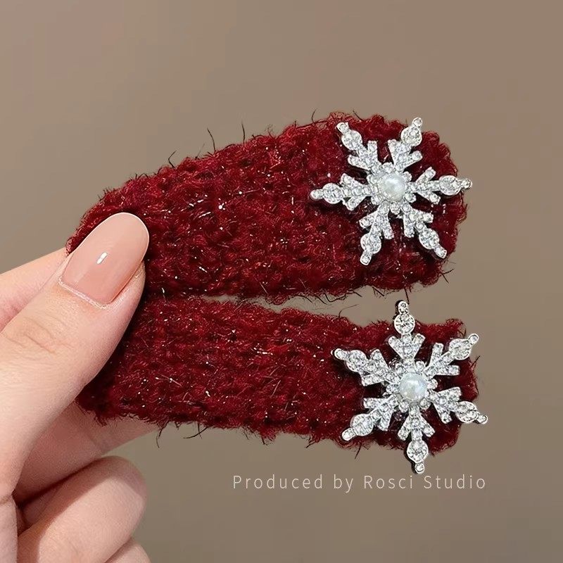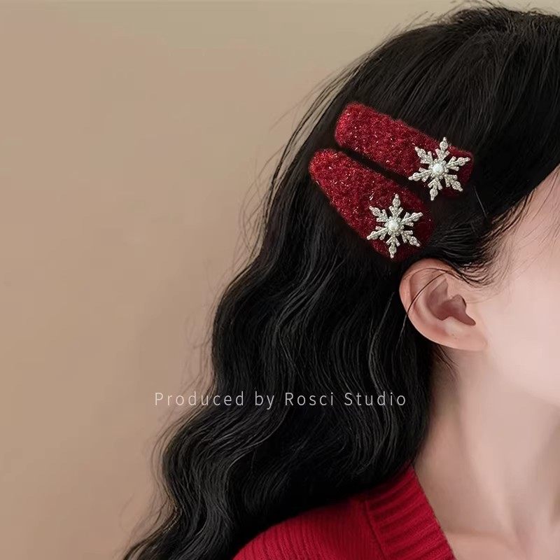新年红色雪花发夹水钻刘海侧边bb夹2025新款高级氛围感头饰品短发