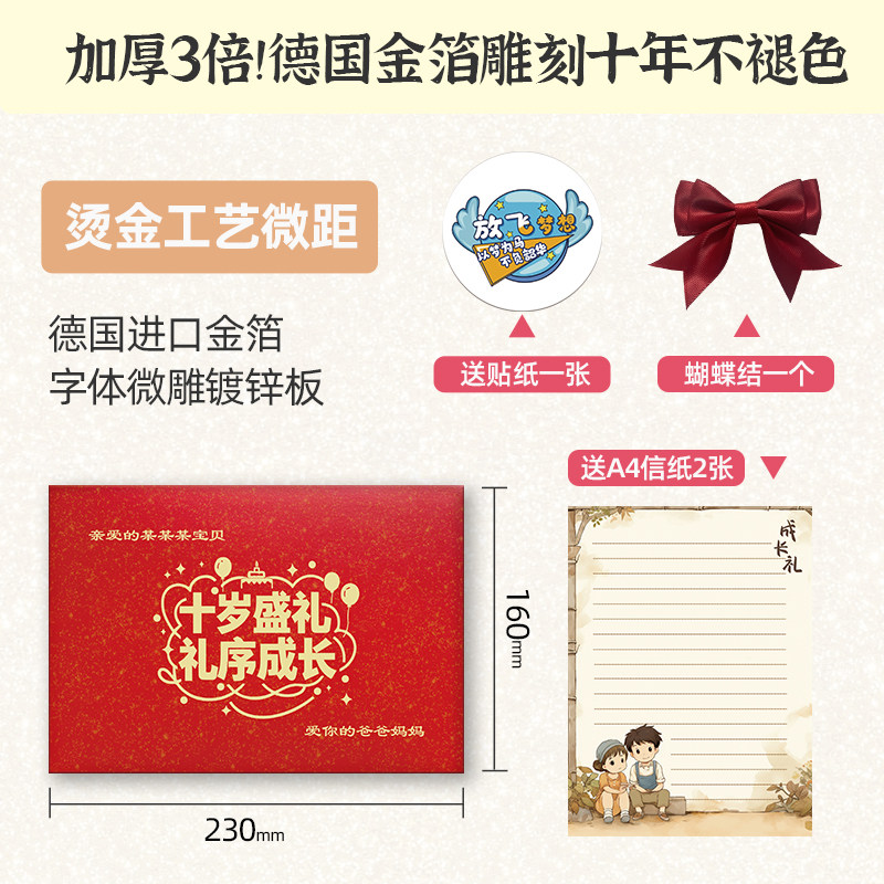 10十岁成长礼烫金信封定制套装感恩教育仪式感材料包学校活动专用