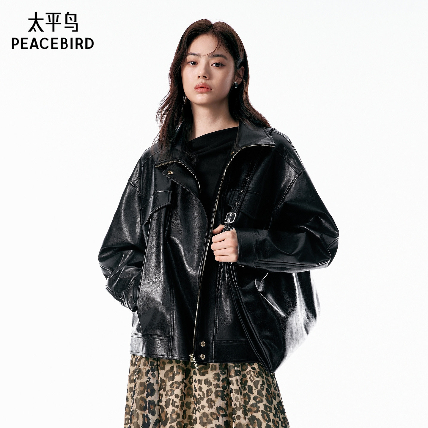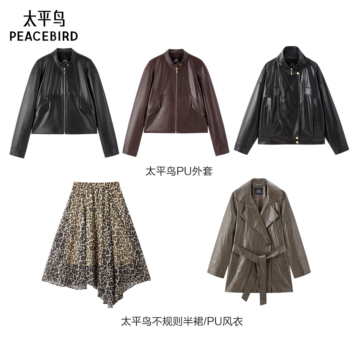 【达播专属】太平鸟PU夹克皮衣风衣不规则半身裙