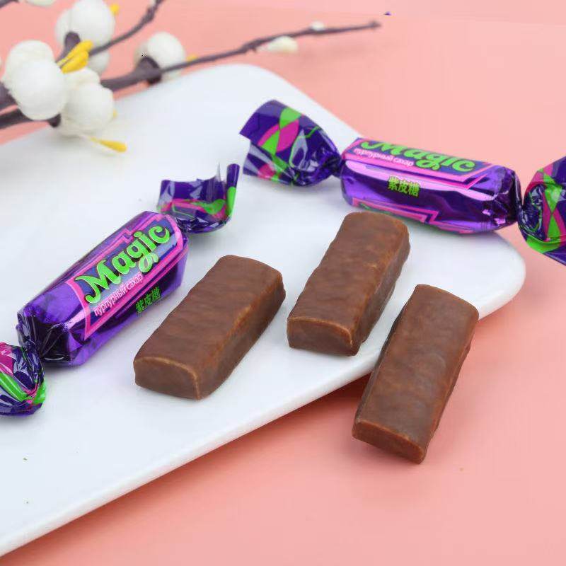 俄罗斯糖果紫皮糖风味夹心巧克力花生酥网红喜糖年货儿童零食批发