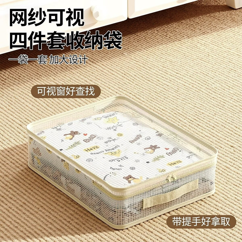 网纱四件套收纳袋家用衣柜换季衣服防尘储物棉被子分格手提整理袋