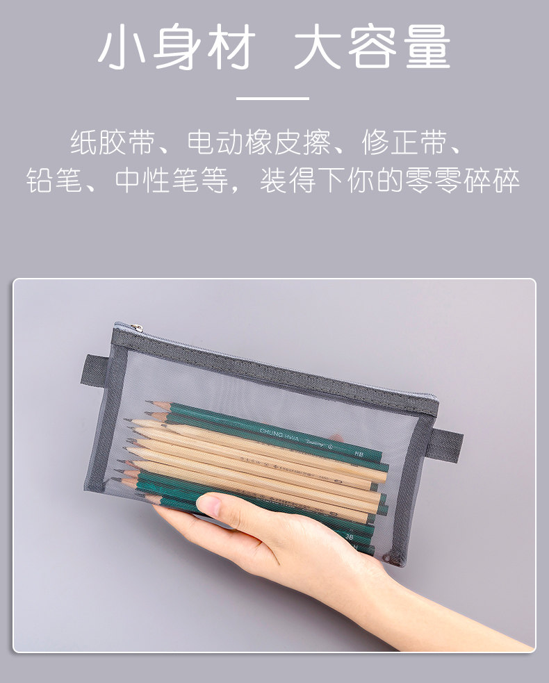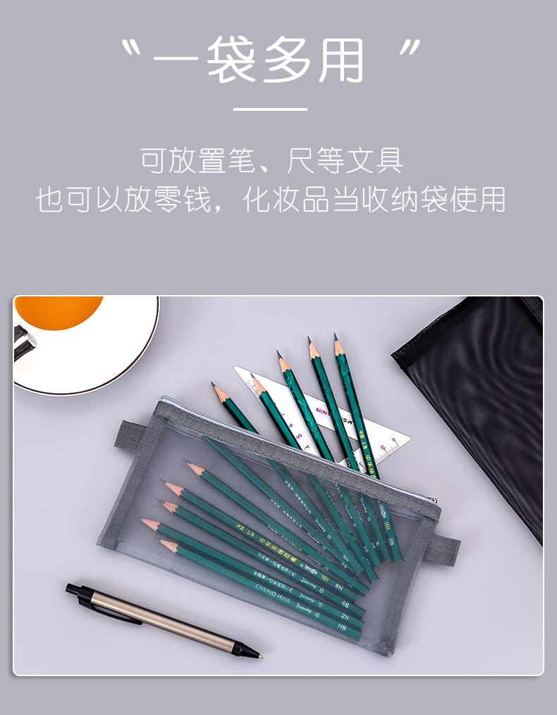 韩版纯色简约透明网纱笔袋学生初中高考试专用大容量小学生铅笔袋