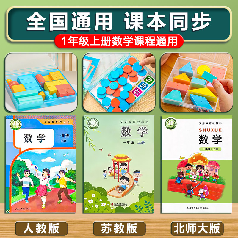 一年级数学教具上册苏教版学纷小学生学具套装立体图形十格阵红蓝圆片钉子板计数小棒雪花片计数器平面图形
