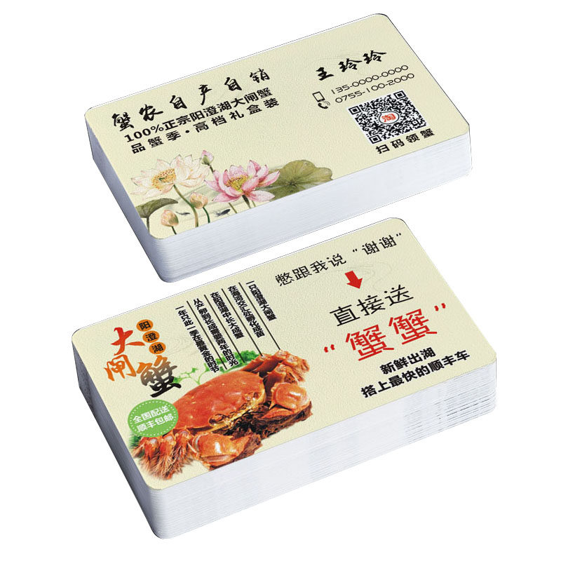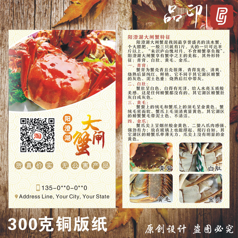 大闸蟹名片制作定订做防水PVC阳澄湖太湖沱湖兴化红膏大闸蟹青蟹