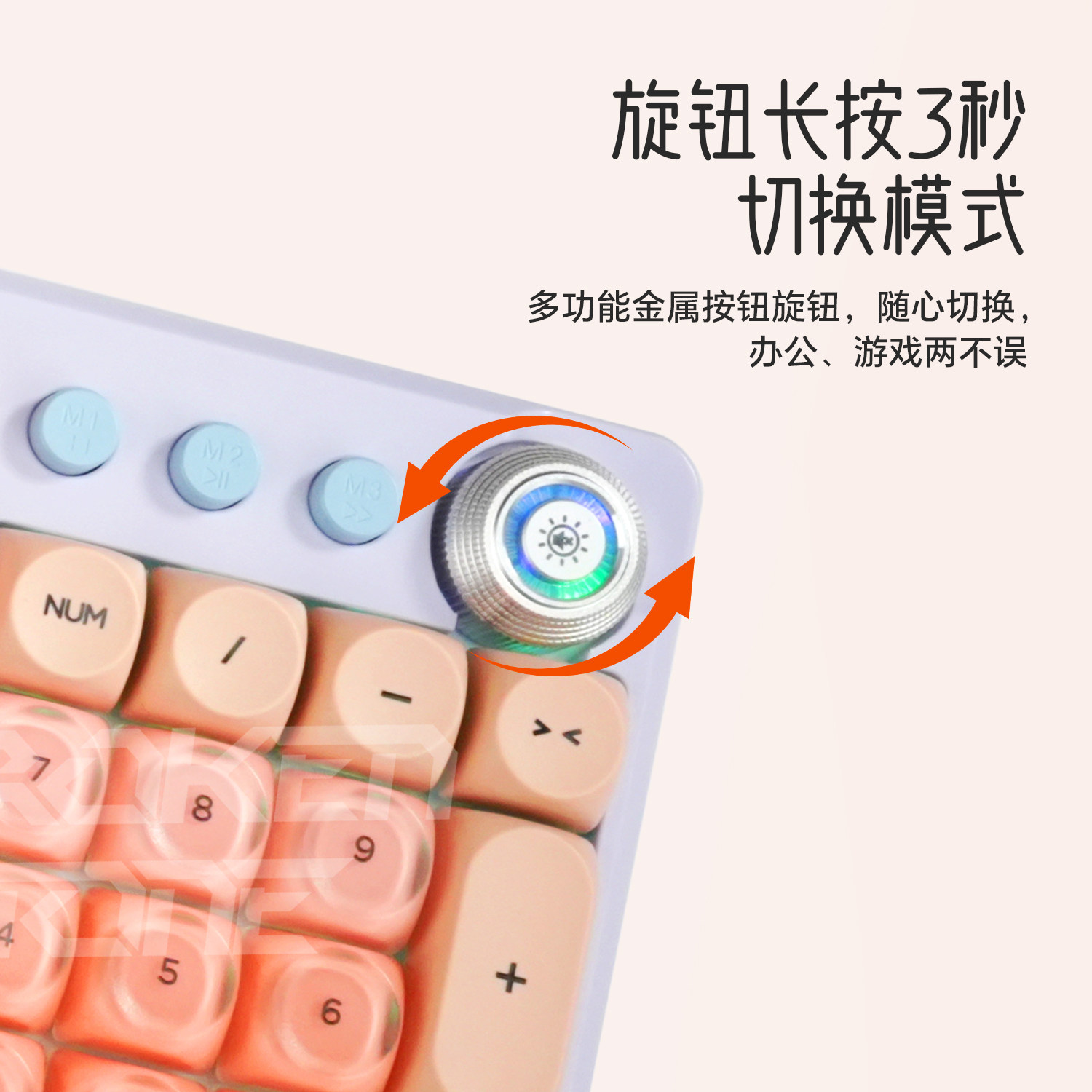 狼蛛粉底液有线机械键盘高颜值女生办公专用104键旋钮客制化静音