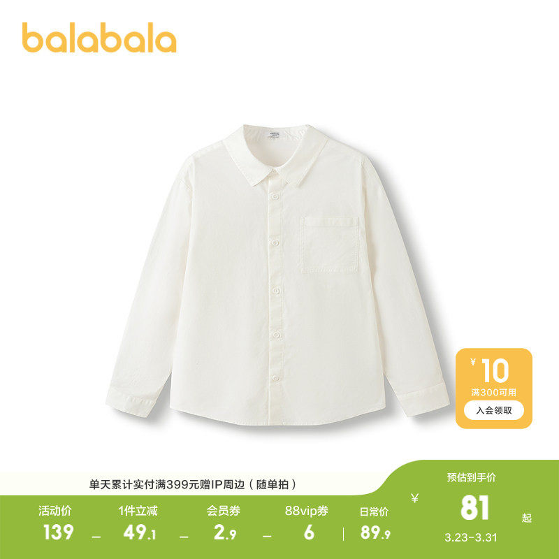 【商场同款】巴拉巴拉男童衬衫儿童长袖秋装女童格子外套纯棉透气