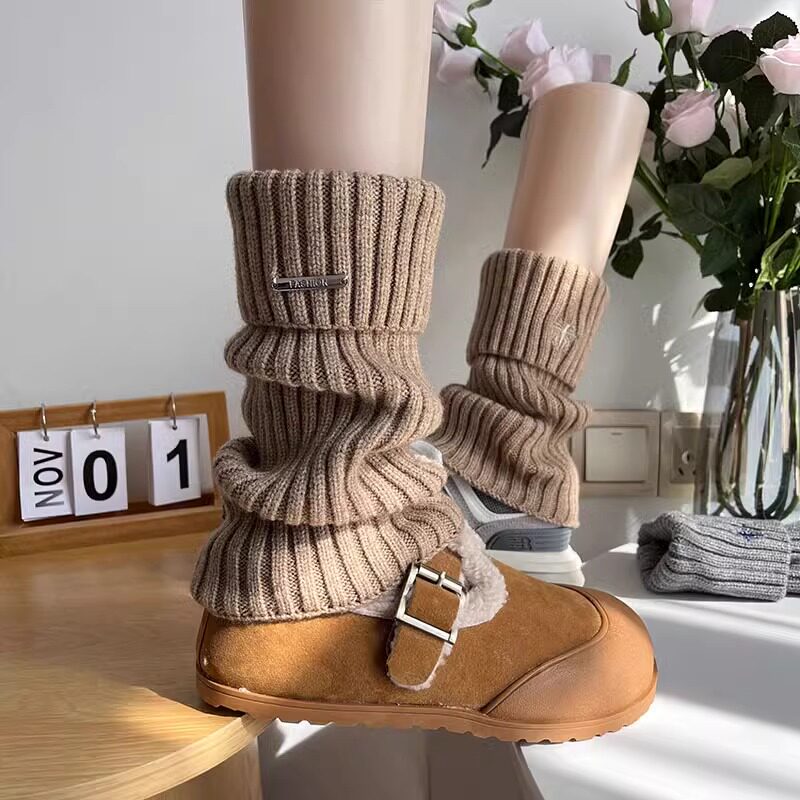 袜套堆堆袜2026百搭针织小腿套金属标美式复古咖啡棕色套女秋冬季