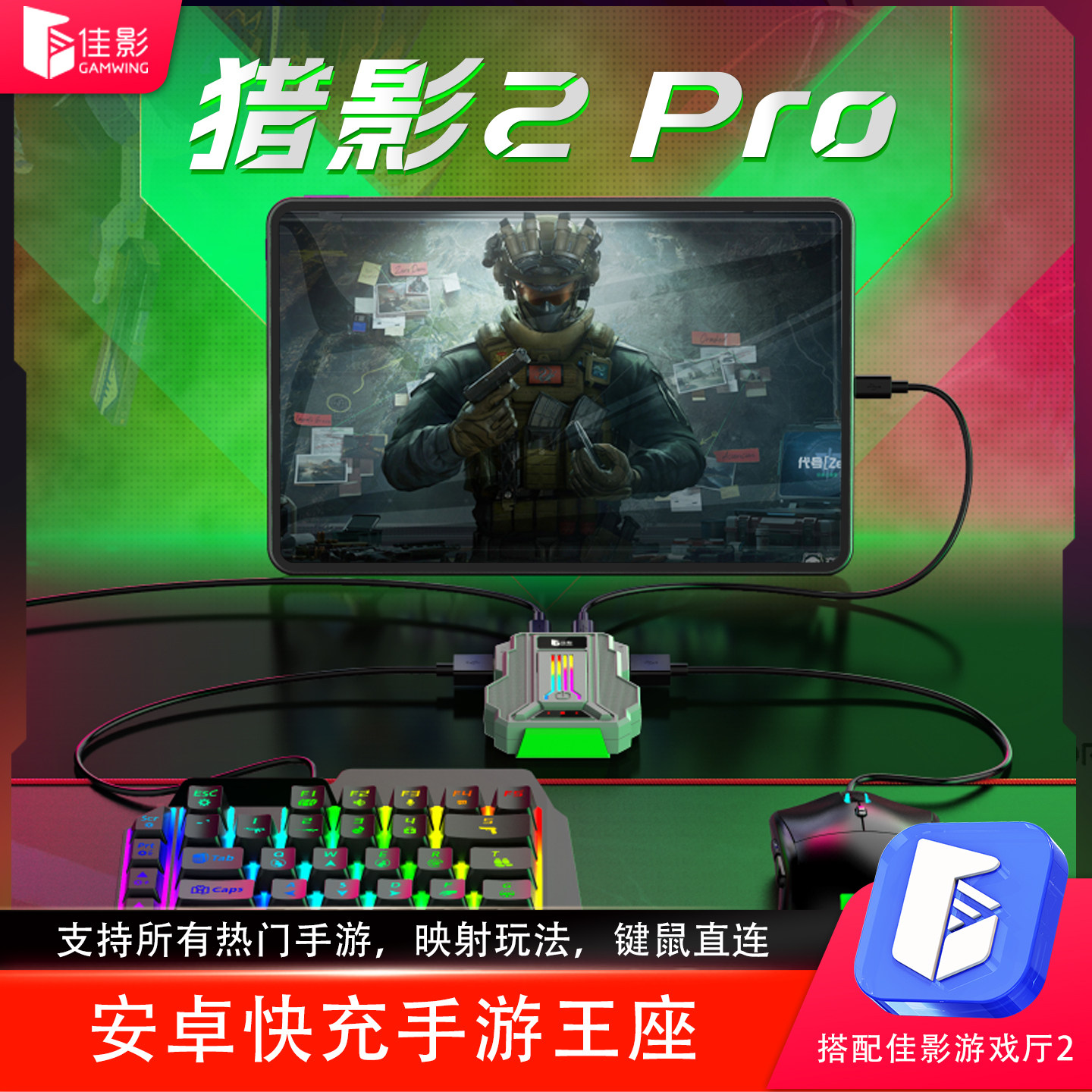 佳影猎影2Pro三角洲行动手游王座物理外设黑科技神器键鼠转换吃鸡神器和平暗区精英手机平板pad安卓鸿蒙通用