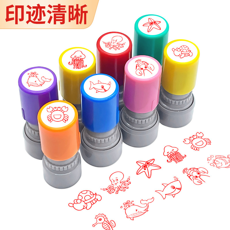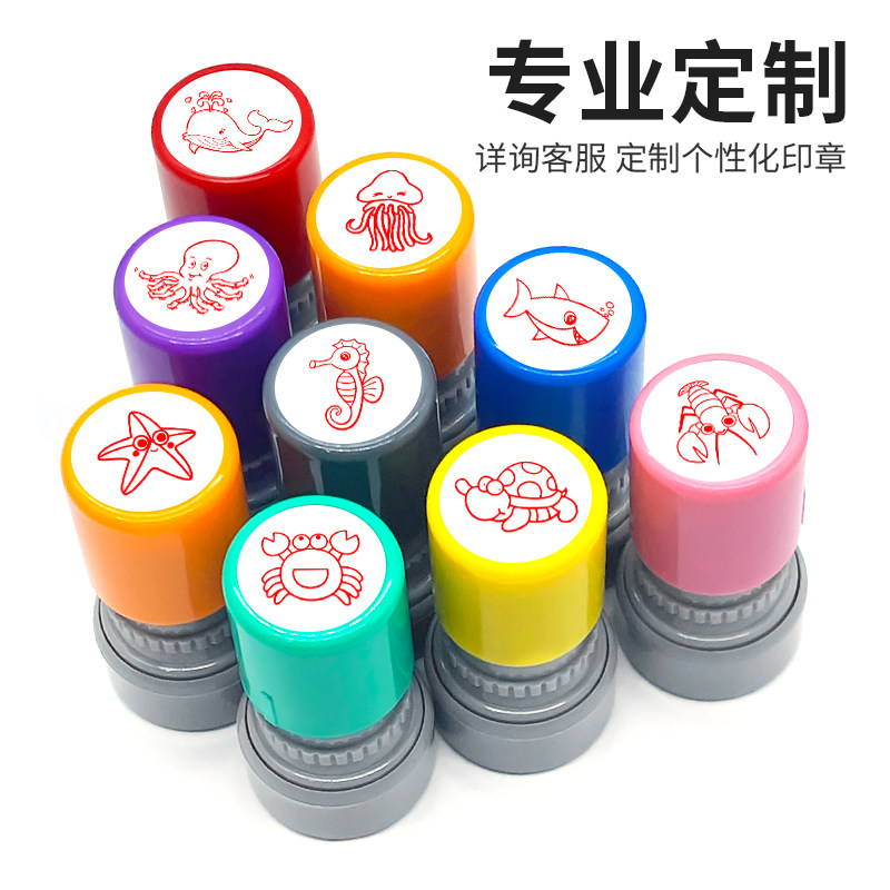 海洋动物可爱儿童宝宝小印章幼儿园教师用奖励盖章螃蟹小金鱼鲸鱼小鲨鱼海豚海星八爪鱼螃蟹龙虾海马海螺图章