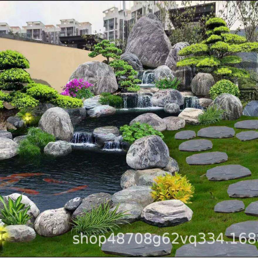 大型灵璧石景观石造景流水假山制作鱼池过滤天然原石石头