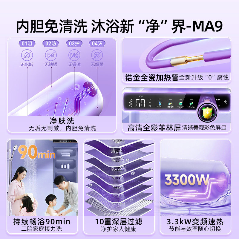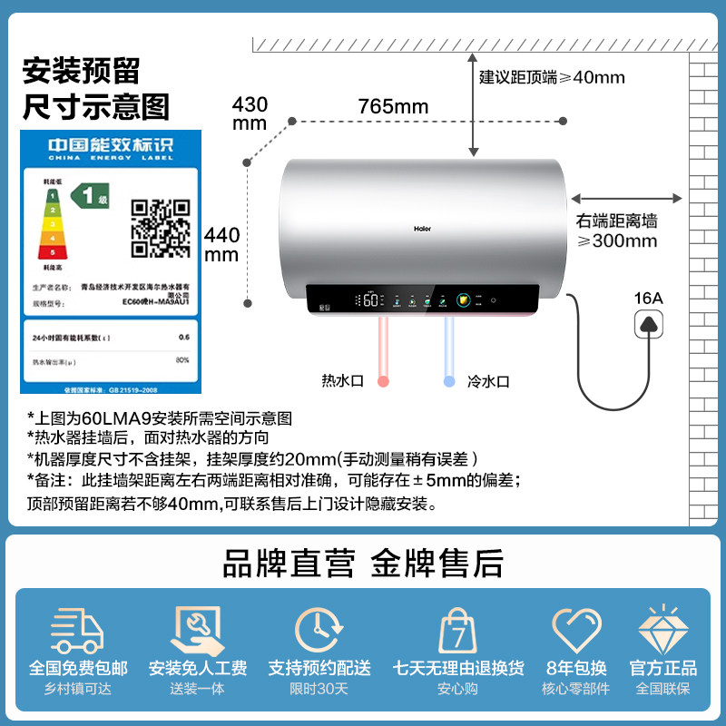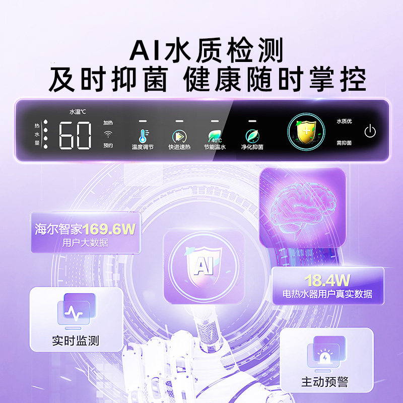 海尔电热水器新款净肤洗澡家用一级节能国补补贴速热变频60升80升
