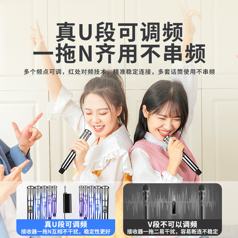 万能无线话筒家用K歌一拖二家庭ktv连音响户外唱歌直播麦克风通用