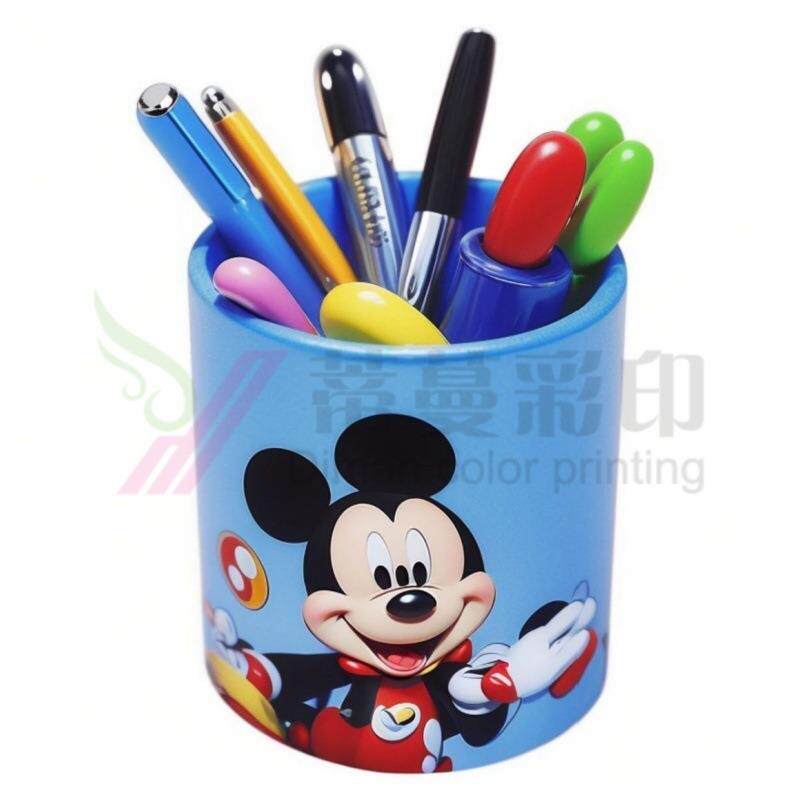 卡通圆柱体塑胶笔筒文具盒铅笔水彩钢笔杆文字图案彩色印刷机