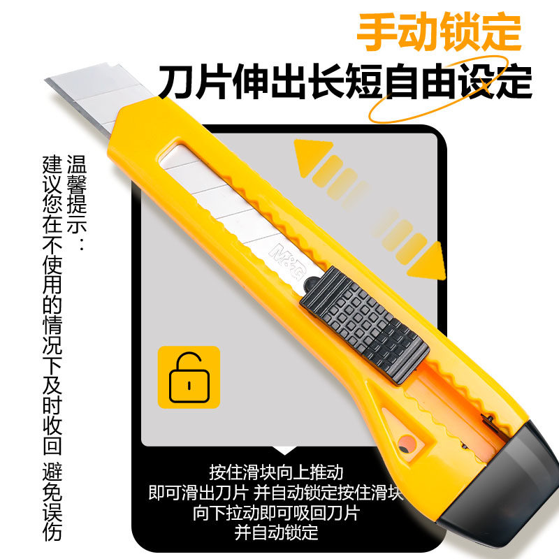 晨光美工刀大号壁纸刀学生削笔刀架伸缩刻刀拆快递包裹的开箱神器快递刀小号美工刀片裁纸刀片工业用钛合金刀