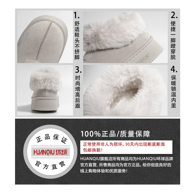 环球厚底雪地靴女款2026冬季新款加绒加厚棉鞋子皮毛一体保暖短靴