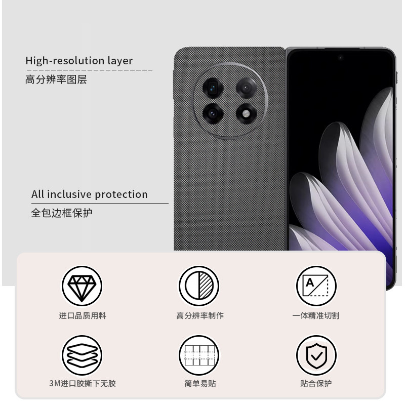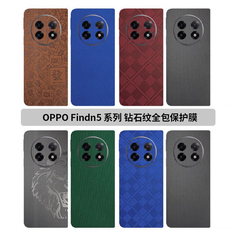 OPPOFindn5钻石纹全包背膜findn5素皮防摔保护膜防刮findn3一体后膜n5中轴铰链膜N2镜头膜3m磨砂超薄改色膜