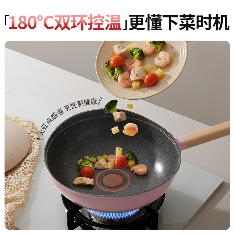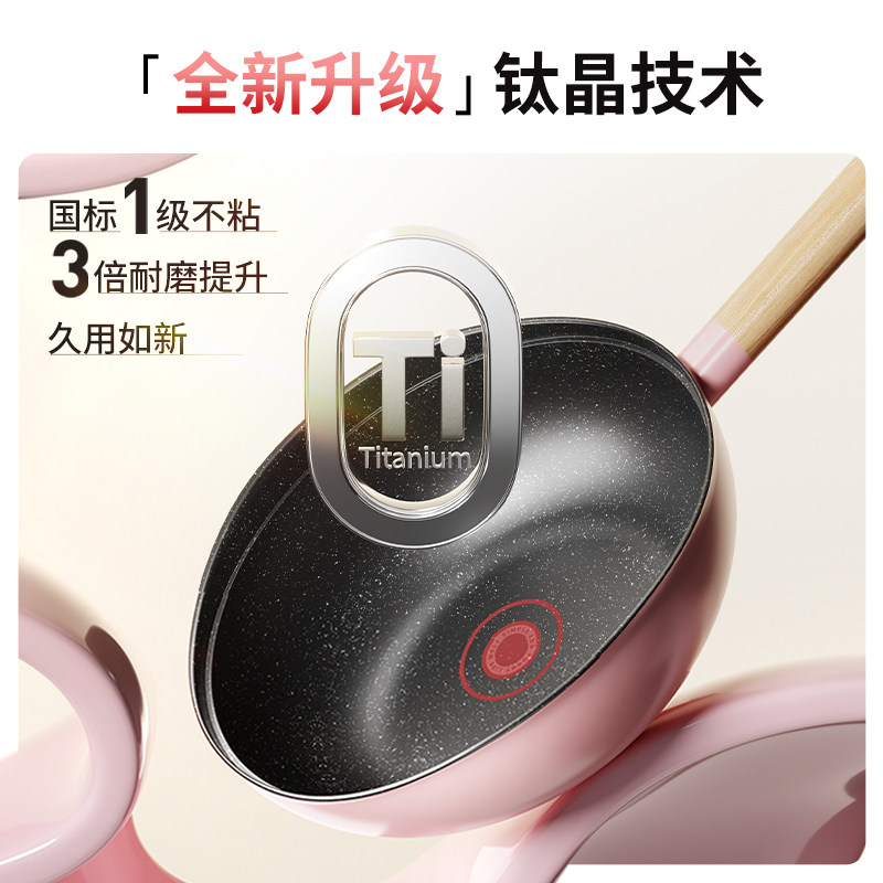 懒米抱抱锅女士轻量有钛不粘炒锅家用炒菜平底锅电磁炉燃气灶专用