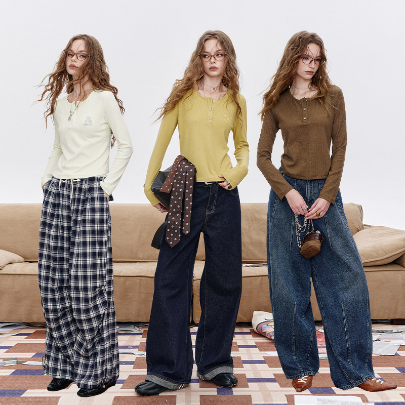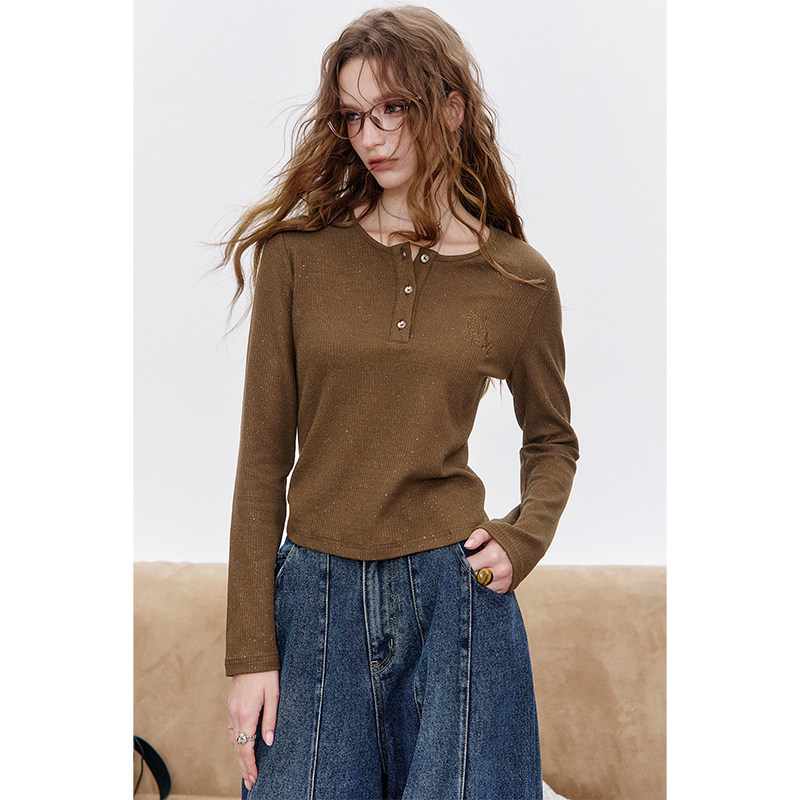 妖精的口袋复古简约长袖t恤女2025秋新款修身显瘦内搭高级感上衣