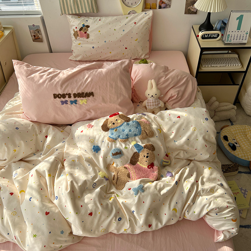 A类腊肠狗毛巾绣四件套纯棉全棉2025新款床单被套学生宿舍三件套4