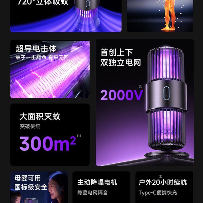 悬浮灭蚊灯神器家用驱蚊器室内2023新款静音蝇V电防蚊灭蚊神器