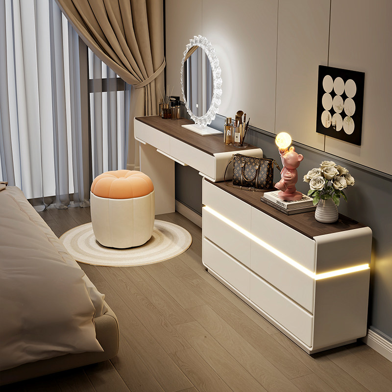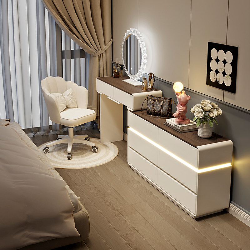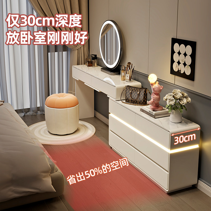 实木奶油风小户梳妆台卧室现代简约轻奢化妆台新款斗柜一体化妆桌