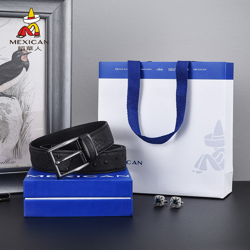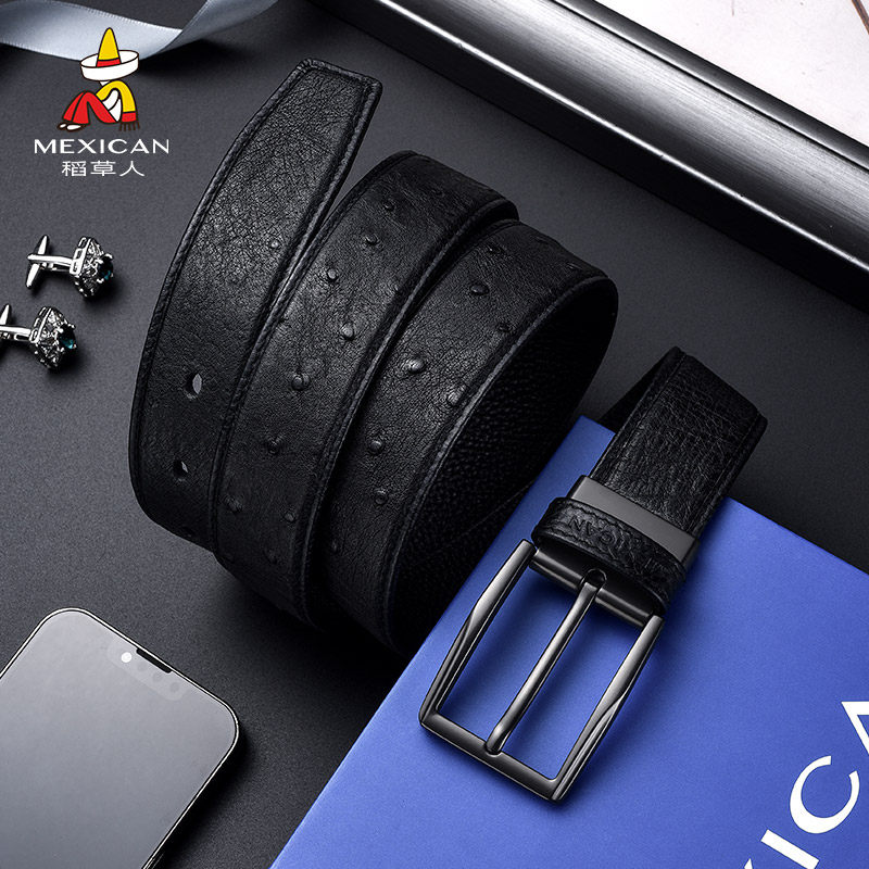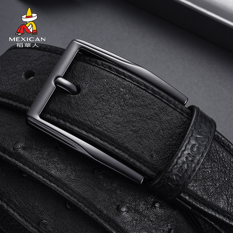 稻草人皮带男款鸵鸟皮针扣男士真皮高档腰带正品商务新款男式裤带