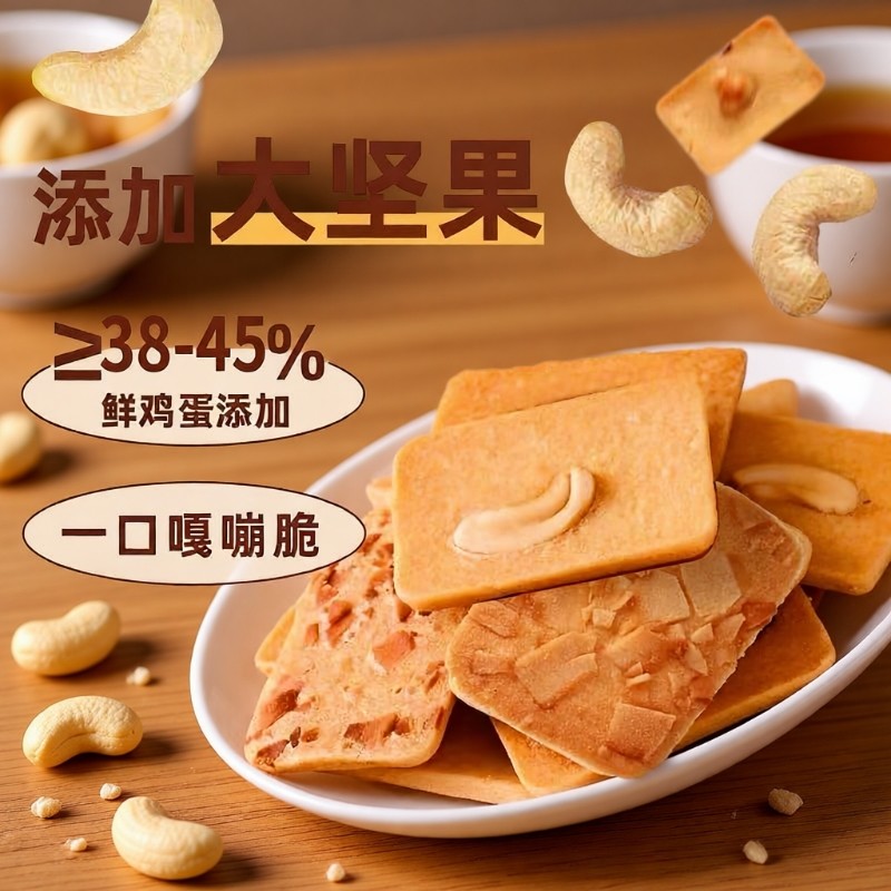 西点符号坚果芙脆饼干杏仁片椰片芙脆曲奇干烙蛋糕新零食腰果椰子
