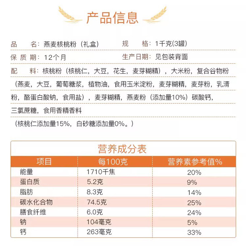 西麦燕麦核桃粉年货礼盒1000g营养早餐代餐粉节日送礼老年营养品