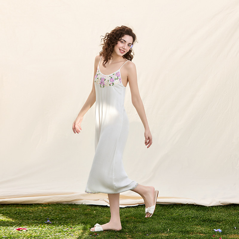 睡裙女夏季吊带性感薄款蕾丝睡衣孕妇带胸垫纯棉莫代尔宫廷公主风