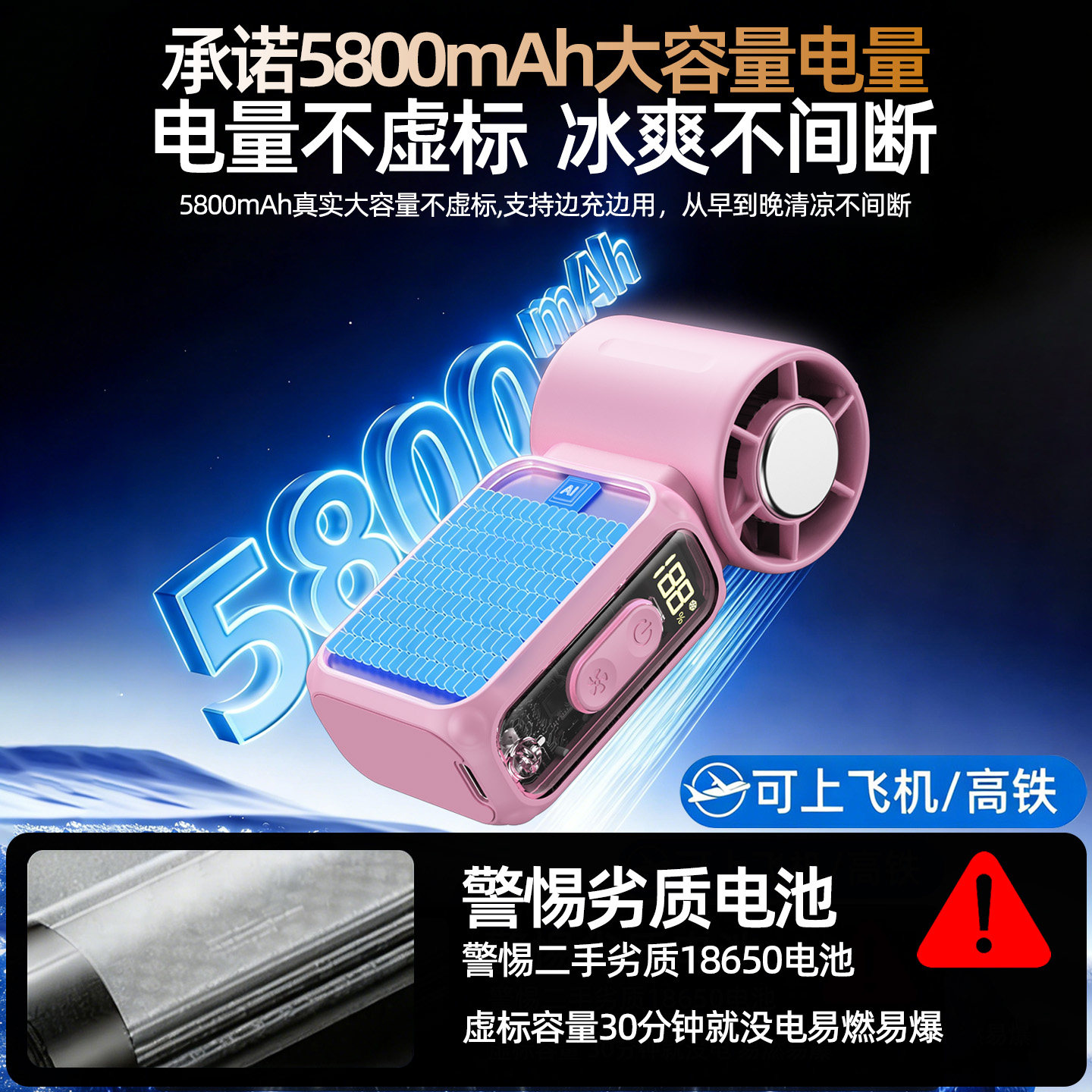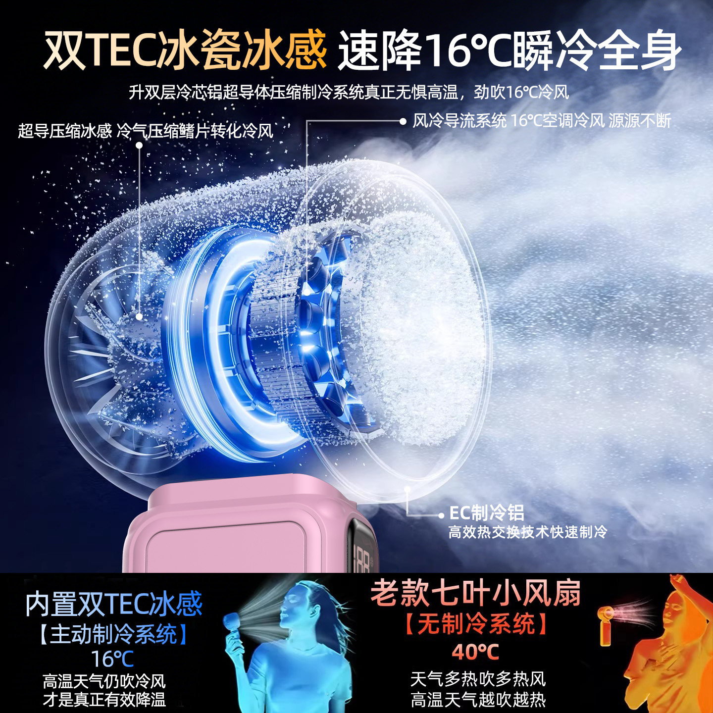 手持小风扇冰敷制冷空调小型超强力涡轮静音挂脖风扇办公室桌面usb迷你便携式户外降温神器充电风扇2026新款