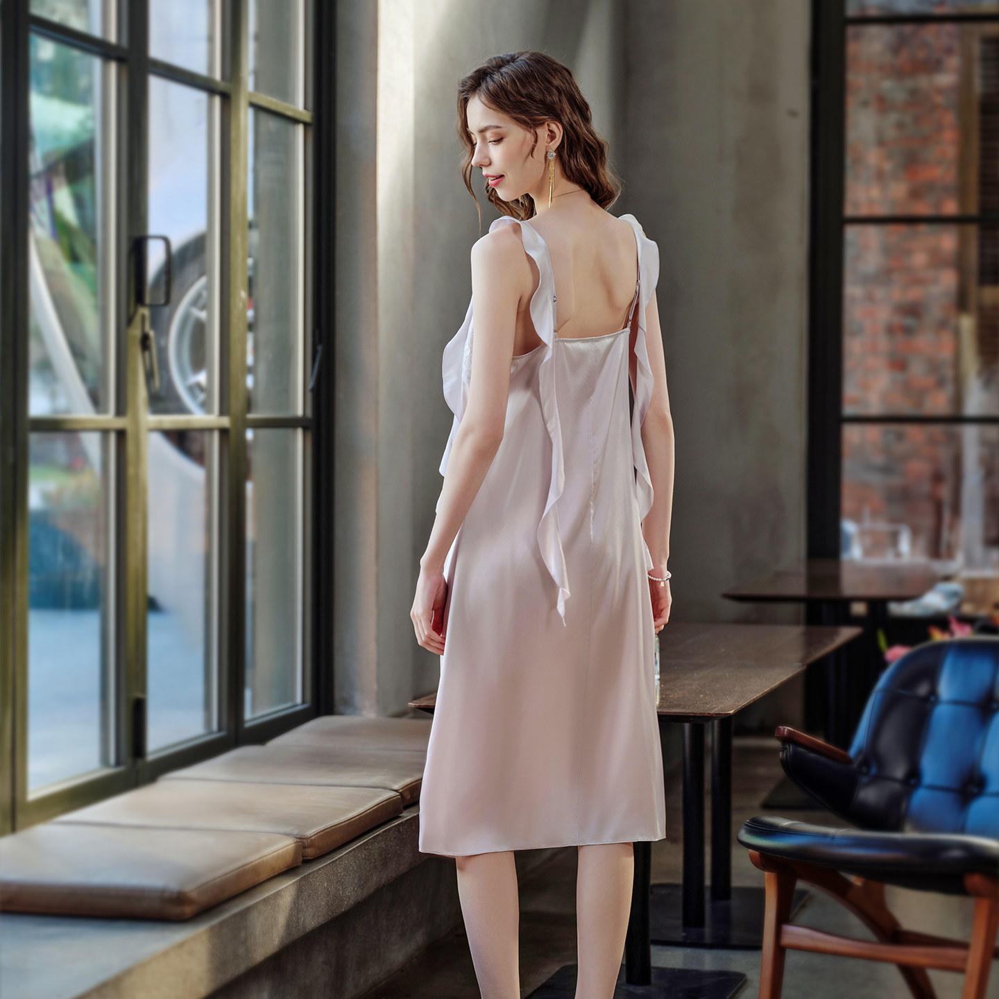 金三塔重磅真丝睡裙性感荡领100%桑蚕丝吊带睡衣女丝绸纯欲风新款