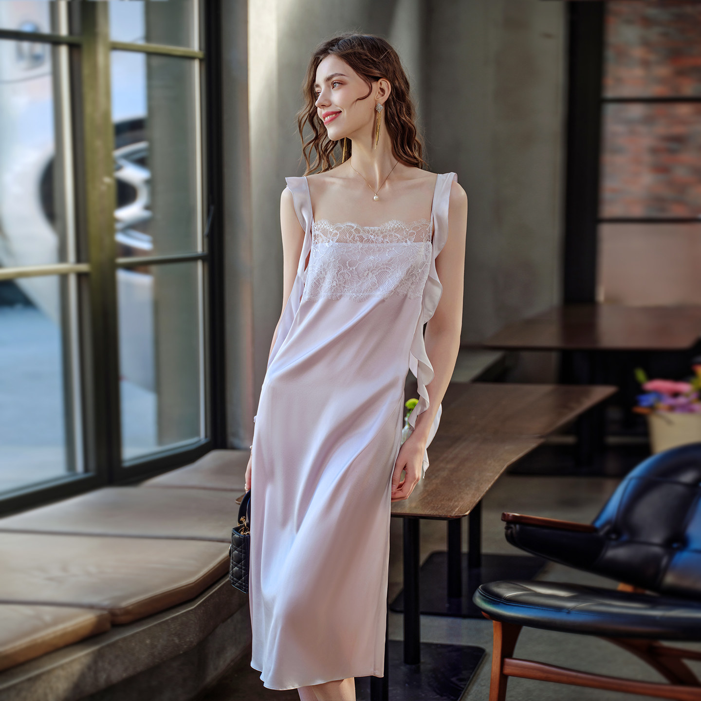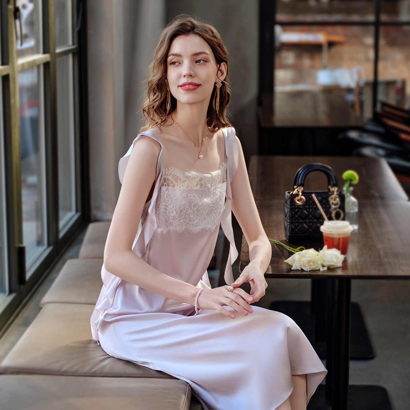 美标2026新品真丝吊带睡裙女夏桑蚕蕾丝性感礼服款长裙丝绸家居服