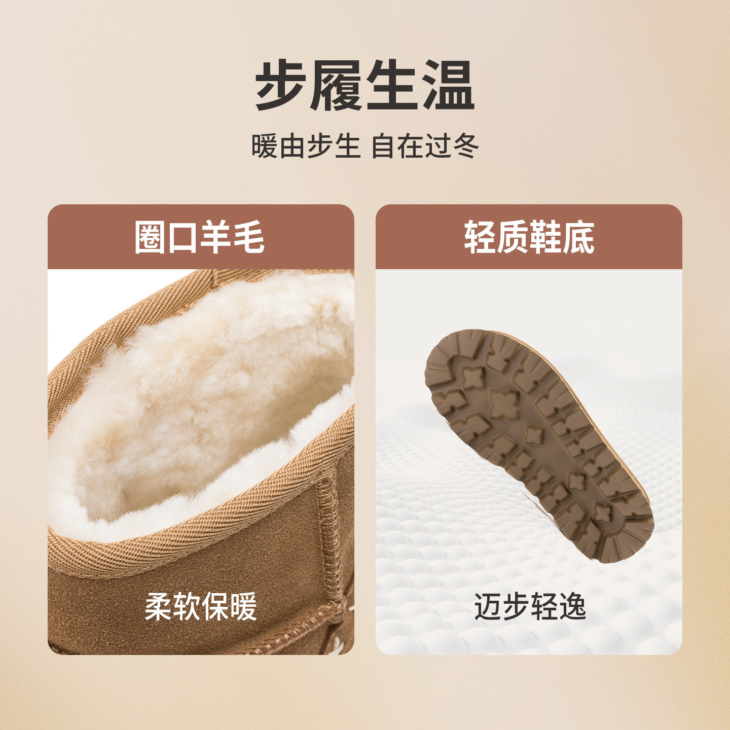奥康 女鞋2025冬季新款靴子女士保暖真皮羊毛雪地靴户外百搭棉鞋