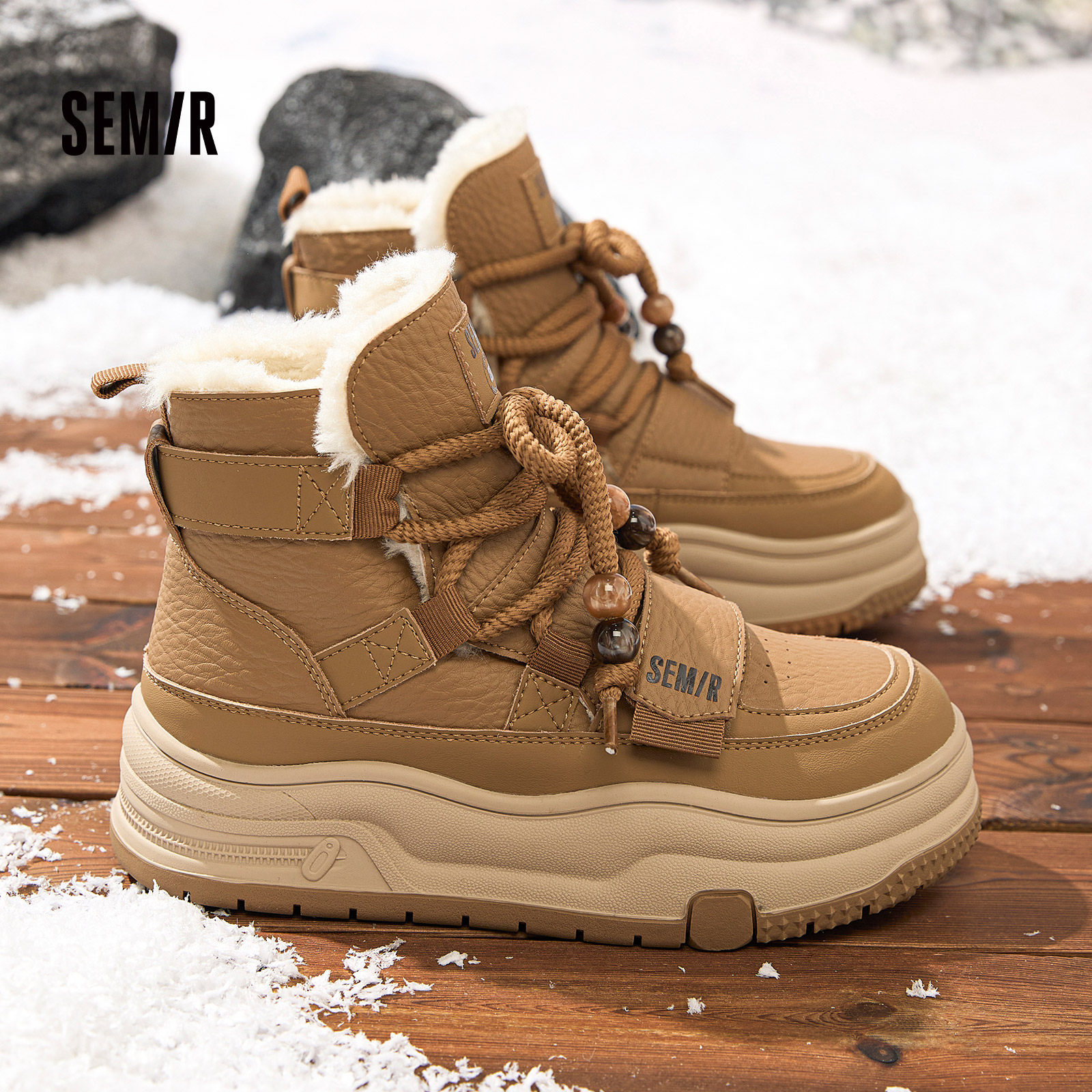 Semir女鞋毛毛雪地靴女2025冬季新款厚底高帮加绒保暖马丁棉靴子