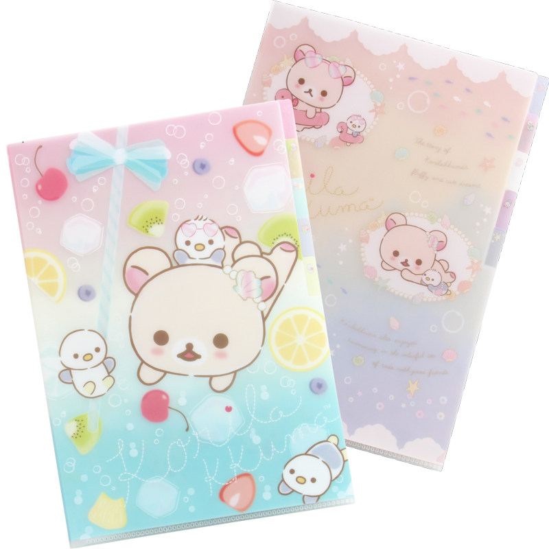 日本限定多层A4文件夹 卡通索引收纳文件套 轻松熊角落生物皮卡丘