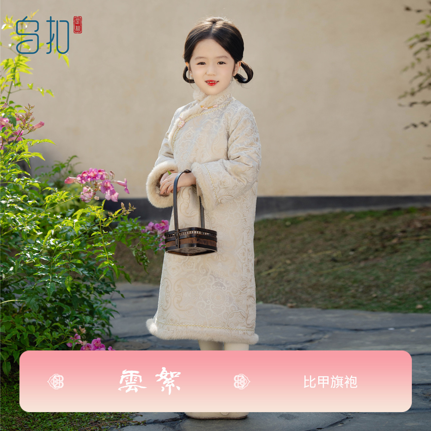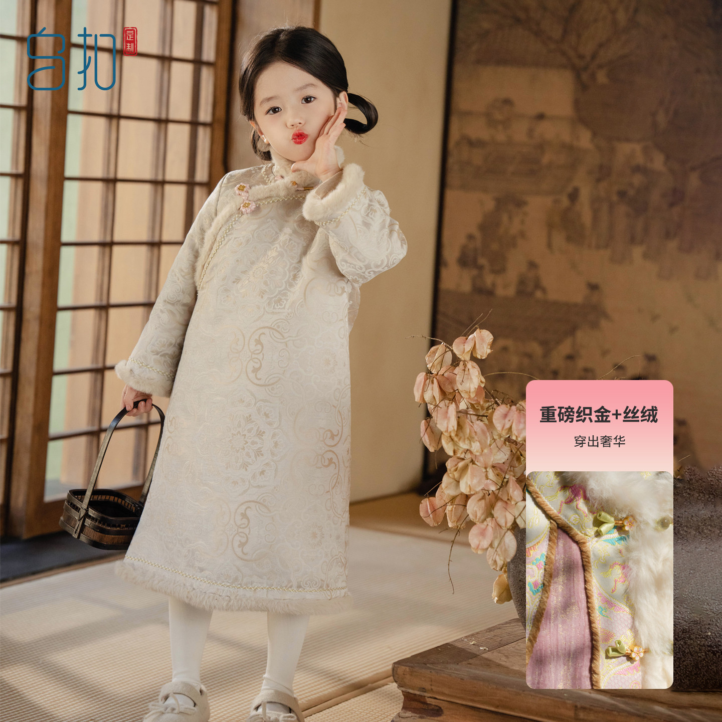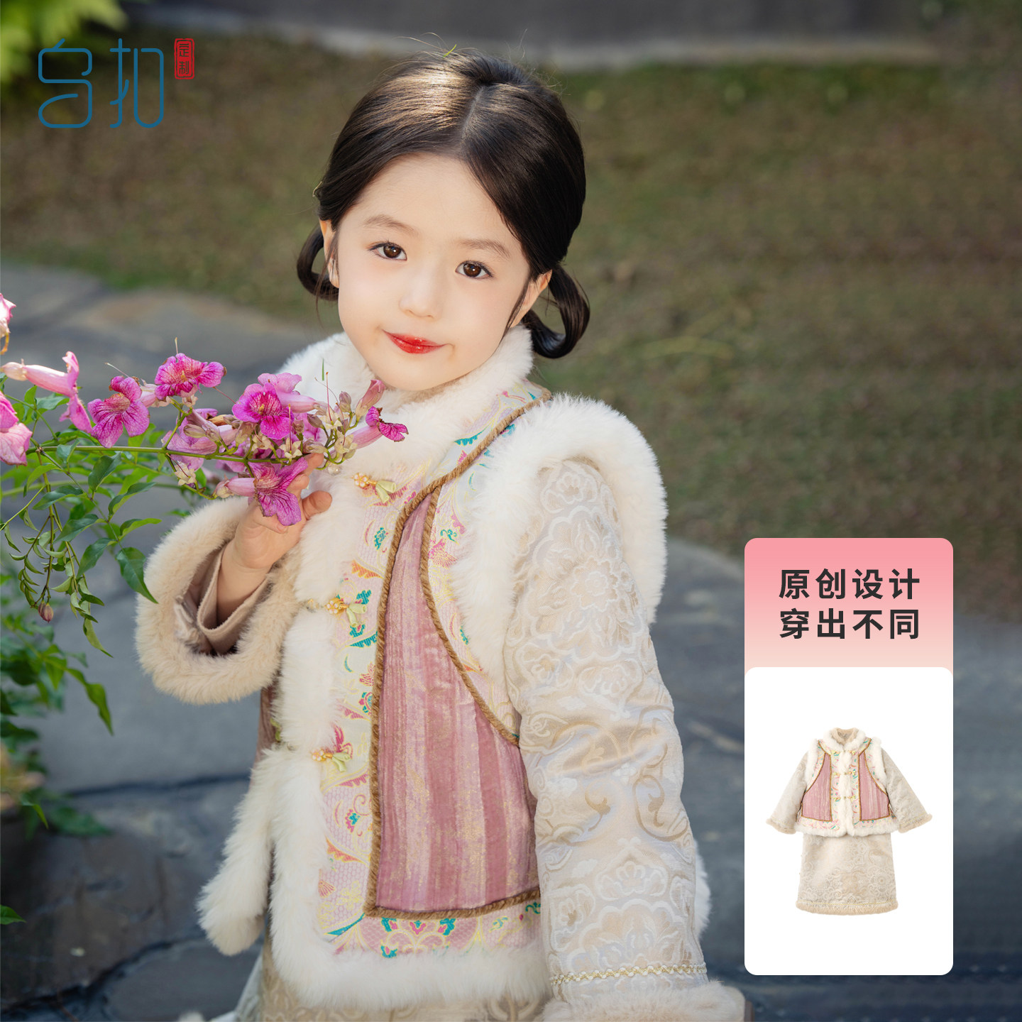 乌扣.云絮 女童旗袍裙冬季儿童中国风新中式汉服马甲冬装套装保暖