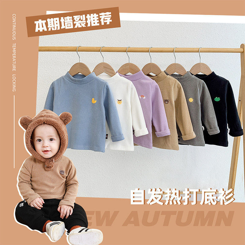 男女童德绒打底衫春秋冬新款儿童长袖T恤洋气宝宝内搭半高领上衣