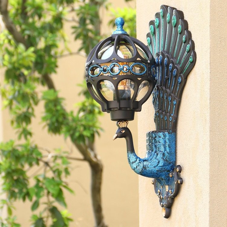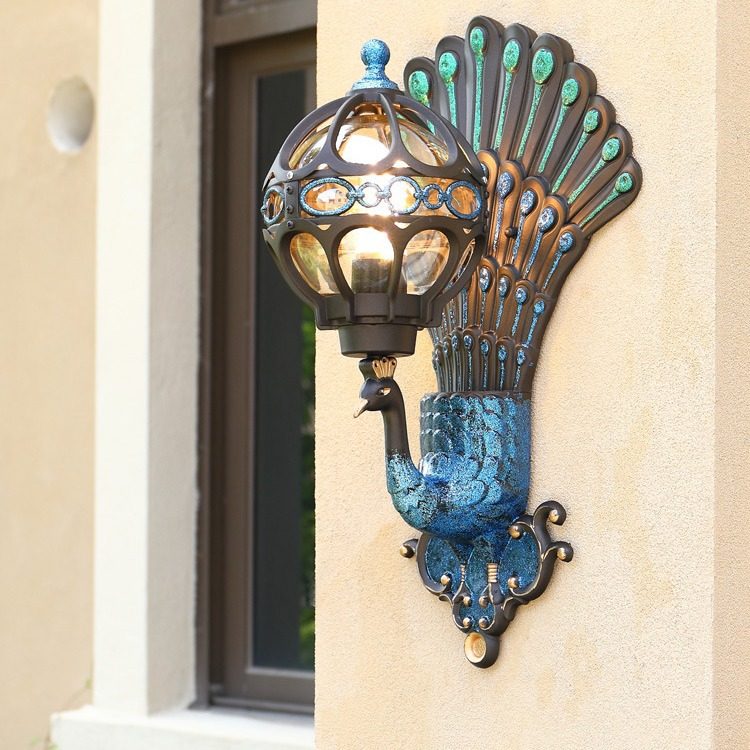 户外壁灯孔雀灯欧式别墅景观庭院大门创意孔雀走廊阳台室外墙壁灯